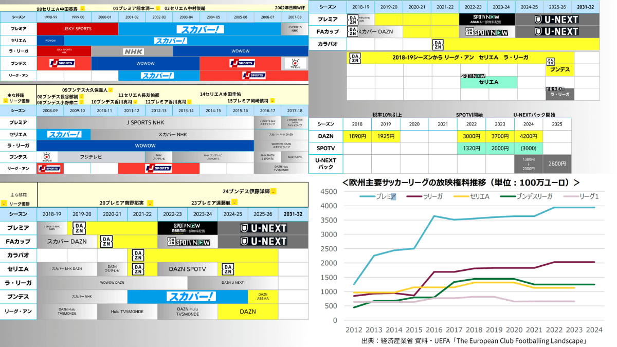 海外サッカーの放映権と視聴料の推移 過去~現在一覧